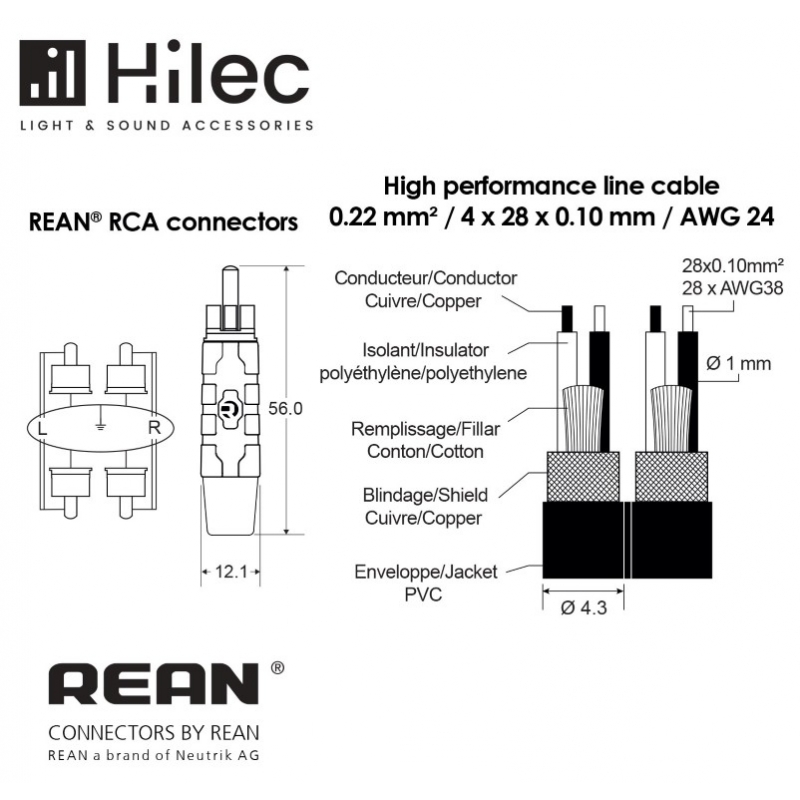 • Cable 2x RCA / 2x RCA