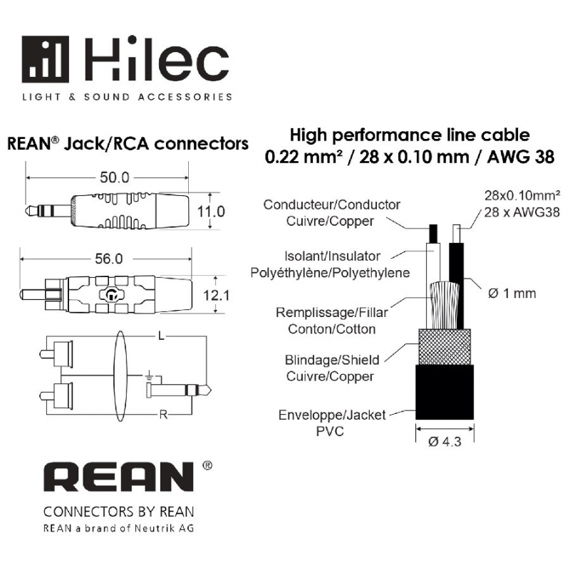 • Cable Jack Estéreo 3.5 / 2x RCA