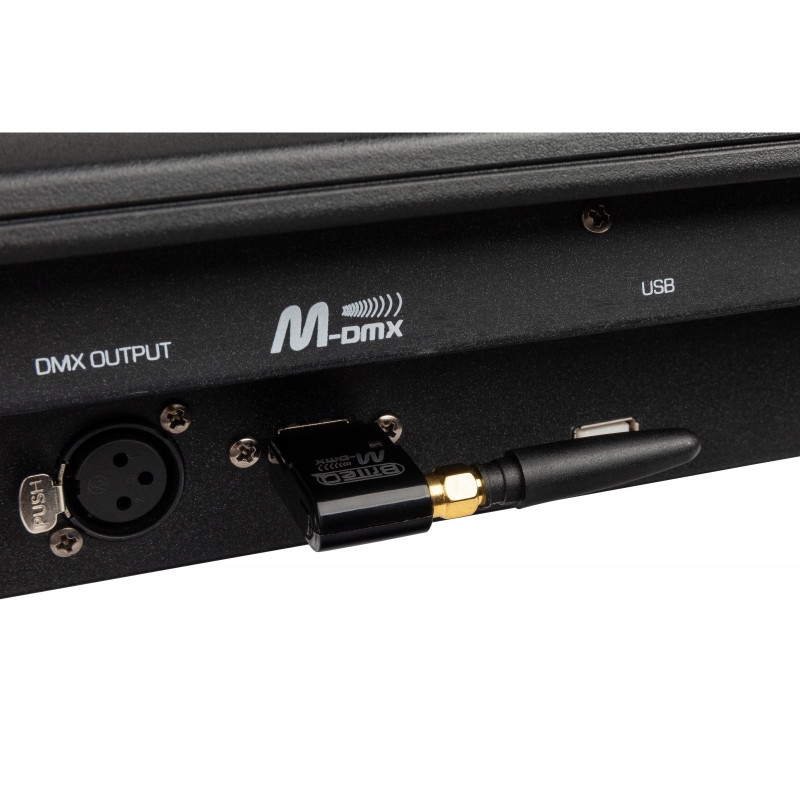 • Puerto USB A (M-DMX) para dongle DMX inalámbrico