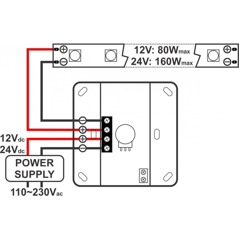 • Atenuador de pared de 1 canal fácil de usar para cintas led de 12Vdc / 24Vdc