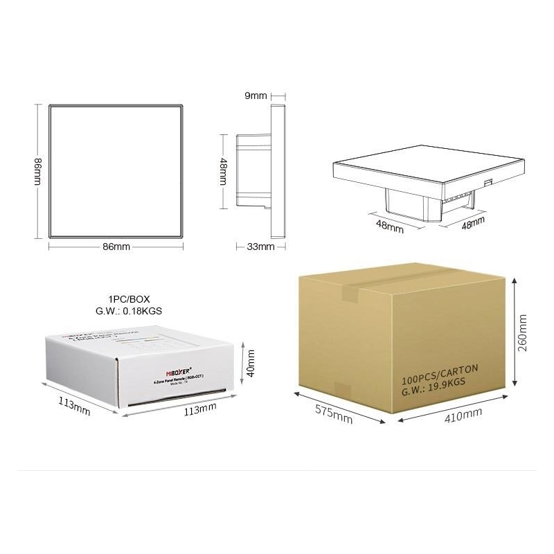 • Dimensiones: 86 X 86mm