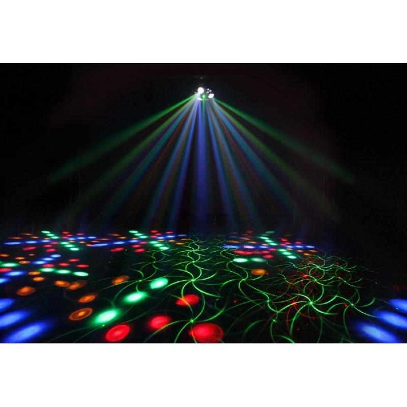 - 3 focos Led individuales + Efecto UV / Blacklight (9 Leds de 8W RGB+UV)