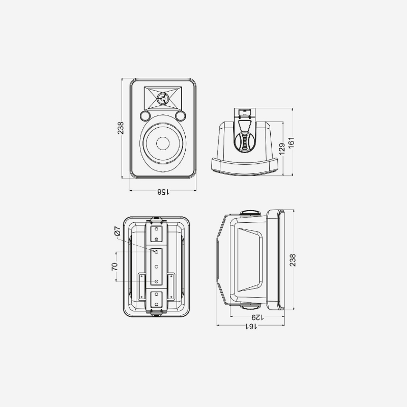 • Selector de potencia: 20W 8Ω // 2.5/5/10/20W 100V
