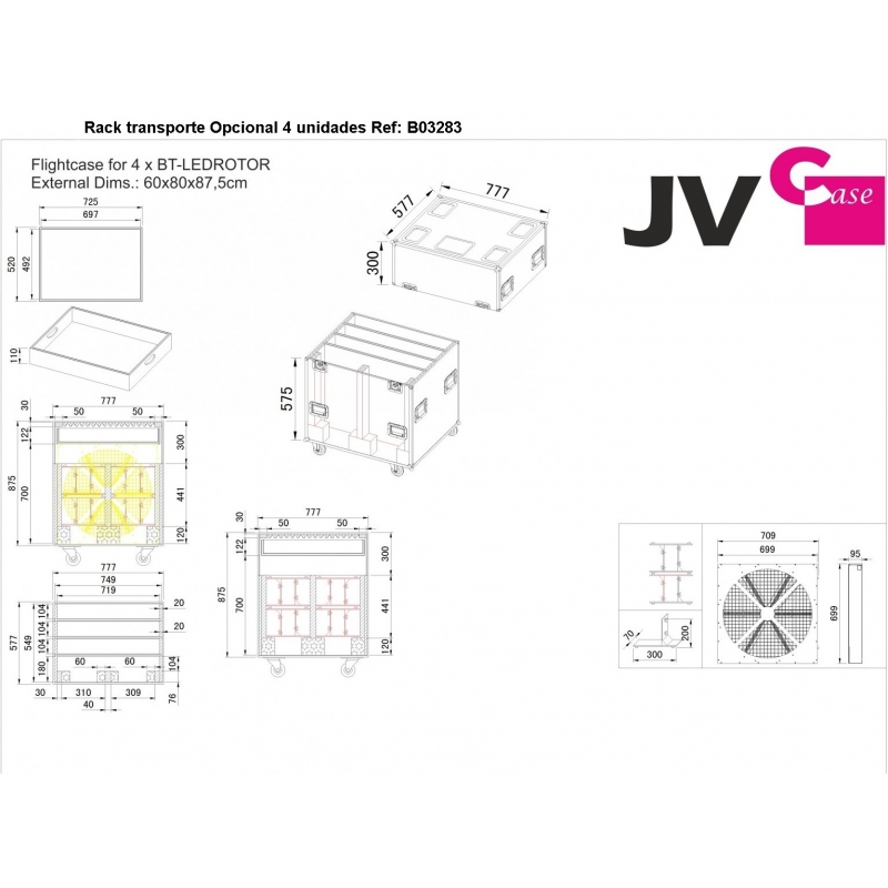 • Opcionalmente está disponible un flightcase especial de 80x60cm para el transporte de 4 unidades + cables y accesorios