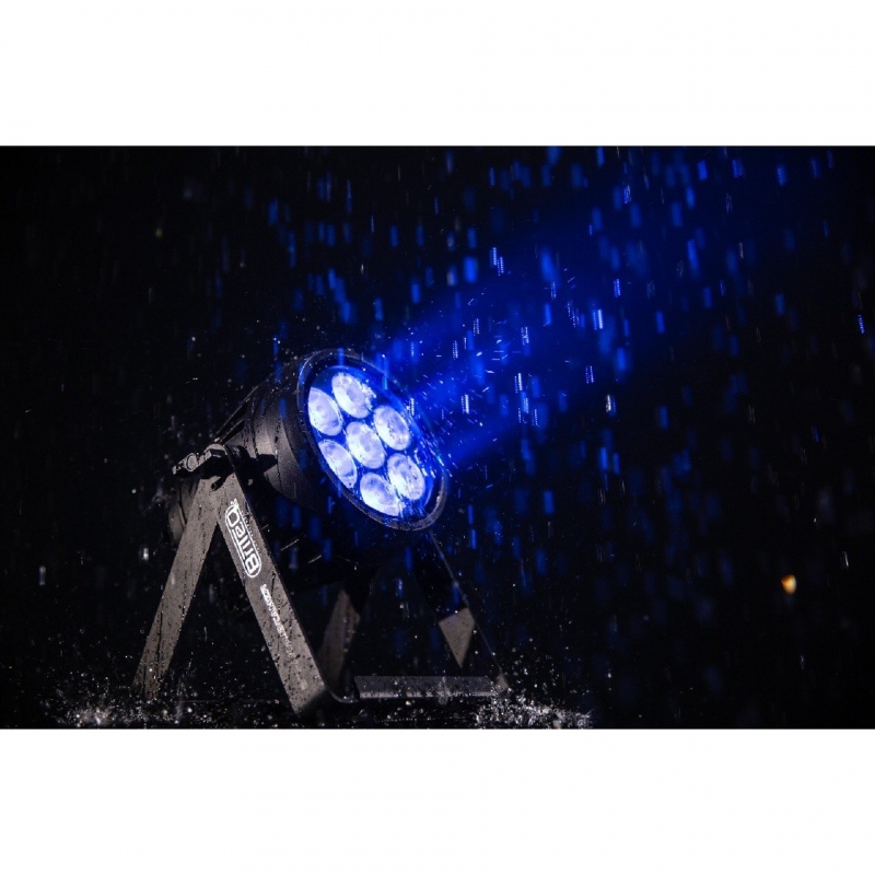 • Proyector compacto para exteriores, con certificación IP65 y funcionamiento a batería, está equipado con 7 LED RGBL de 10 W.