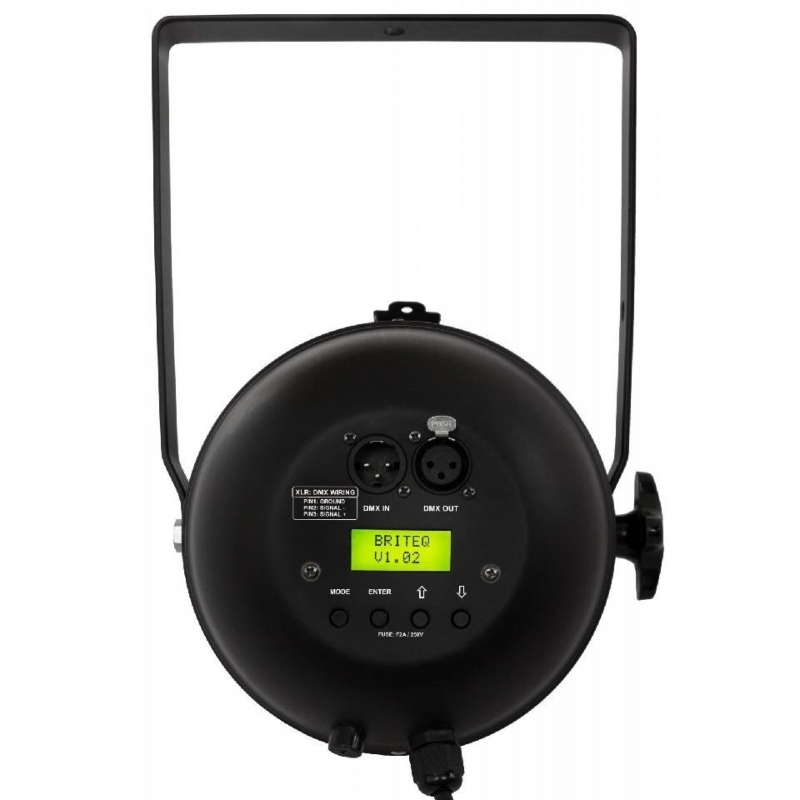 - Controlado por DMX, 2 canales: atenuador, estroboscópico