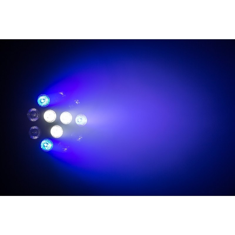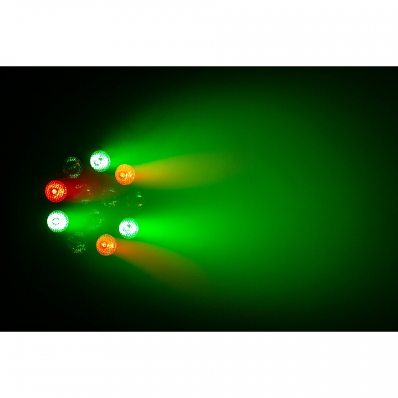• 12 Leds de 1W (3R/3G/3B/3W)