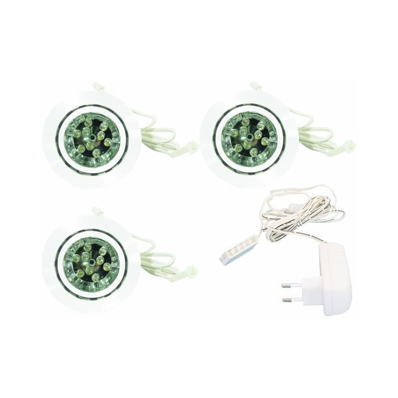 • Conjunto de 3 luminarias con elementos Led para instalación en falsos techos