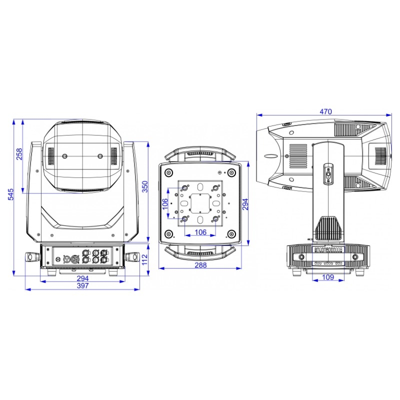 • Salida: 3 pin XLR, 5 pin XLR, Wireless DMX, Artnet, RJ45, RDM, PowerCon TRUE1