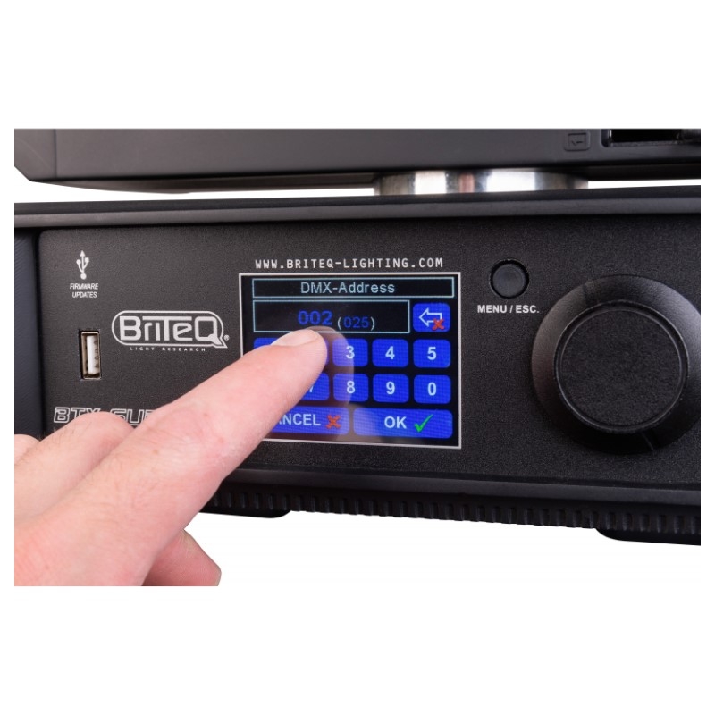 • Entrada: 3 pin XLR, 5 pin XLR, Wireless DMX, artnet, RJ45, rdm