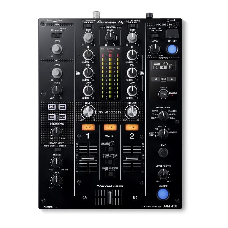 La DJM-450 es compatible con rekordbox, por lo que puedes pinchar con pistas almacenadas en tu PC/Mac cuando