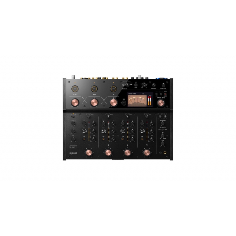 La Euphonia de AlphaTheta es la mesa de mezclas DJ que marca el comienzo de una nueva era en sonido y diseño. Con una calidad de sonido sin precedentes, combina la pureza digital con la calidez analógica gracias a su tecnología avanzada y su circuito transformador desarrollado junto a Rupert Neve Designs. Su diseño intuitivo y sus características innovadoras hacen que sea ideal para DJs profesionales que buscan precisión, creatividad y un sonido excepcional.