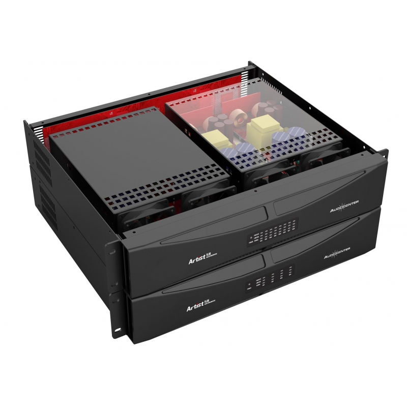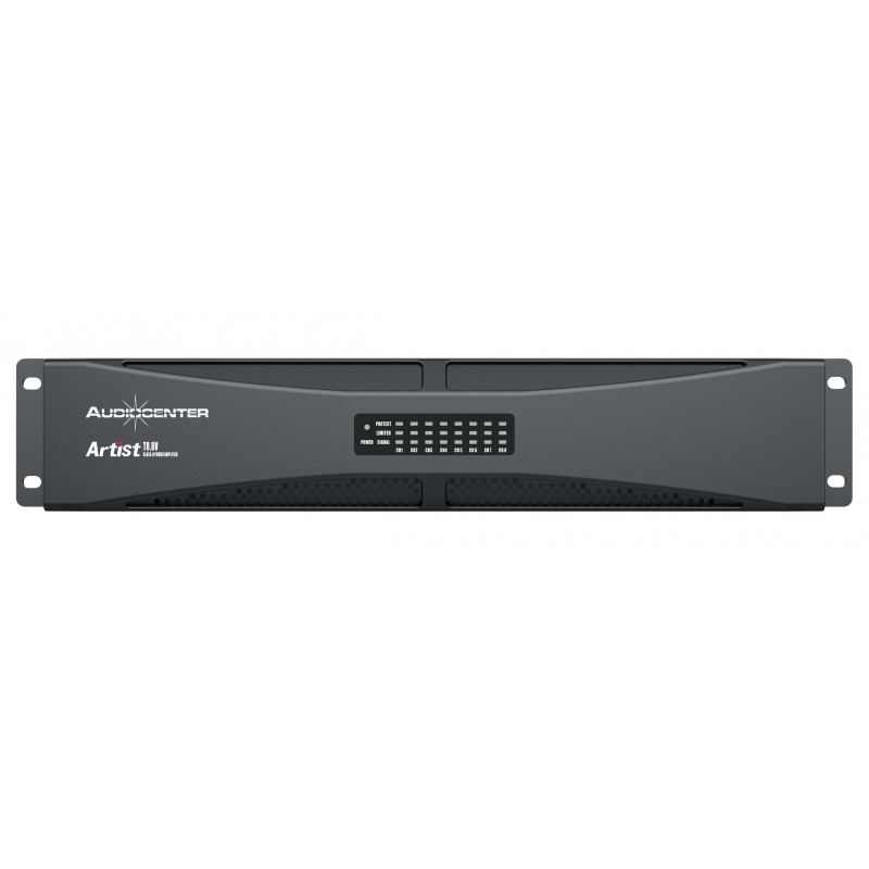 Artist T8.8V es un amplificador Clase D de 4 canales para instalaciones de audio comerciales. Artist T8.8V ofrece la reconocida alta fiabilidad y el excelente rendimiento de sonido que ofrece el sistema AUDIOCENTER. Los modelos de esta serie tienen salida de baja impedancia y salidas de 70/100 V. T8.8V tiene un diseño ultracompacto de 2U permite la instalación en un rack de equipos de 19".