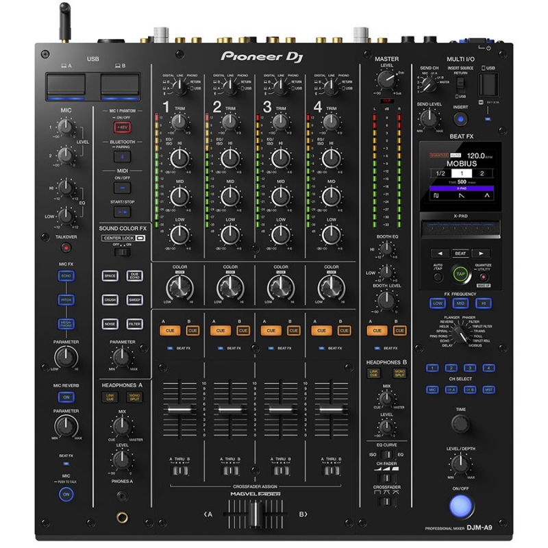 La entrada de alimentación phantom significa que puedes conectar un micrófono de condensador de alta calidad directamente a la DJM-A9, una característica nunca antes vista en una mesa de mezclas DJ. Y hay 3 nuevos efectos de micrófono (Echo, Pitch, Megaphone) con un efecto de reverberación dedicado para que puedas cambiar el sonido de tu voz y animar a la audiencia con tu voz.