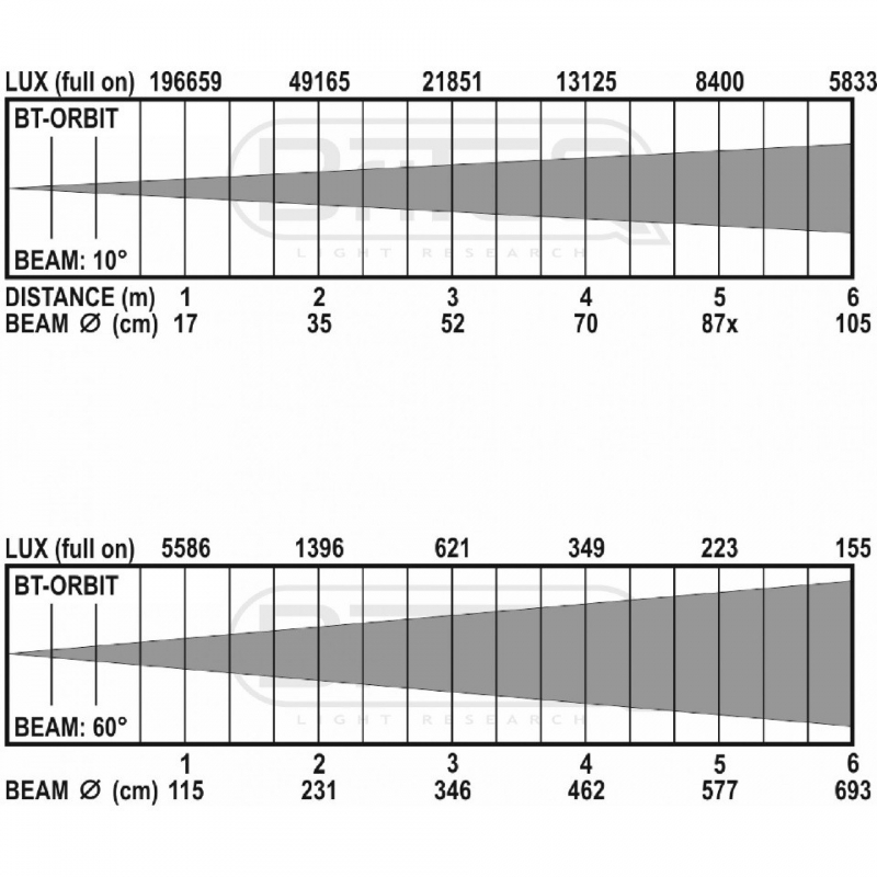 • Lux: 577 a 5m 60º / 8400 a 5m 10º
