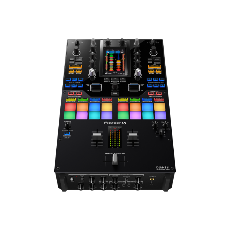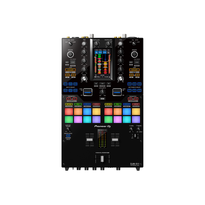 Mejora tu actuación con la DJM-S11. Esta nueva mesa de mezclas profesional de 2 canales con control para 4 decks, mejora varios