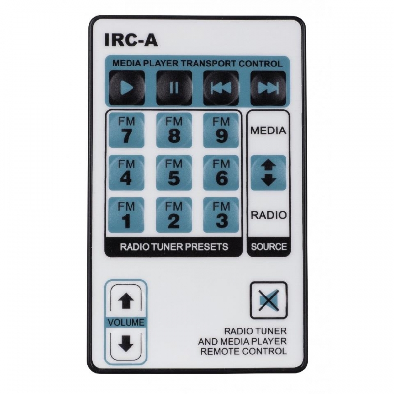 • Control remoto IR que controla el reproductor multimedia, preajustes de radio, volumen / mute