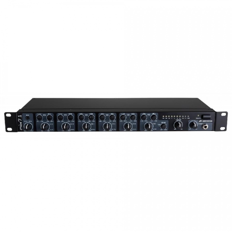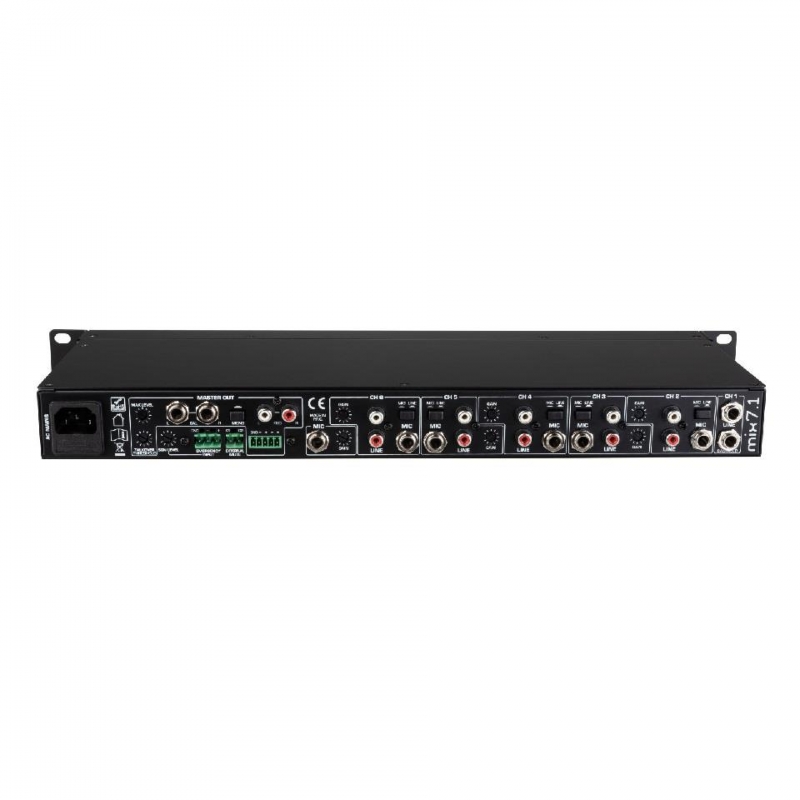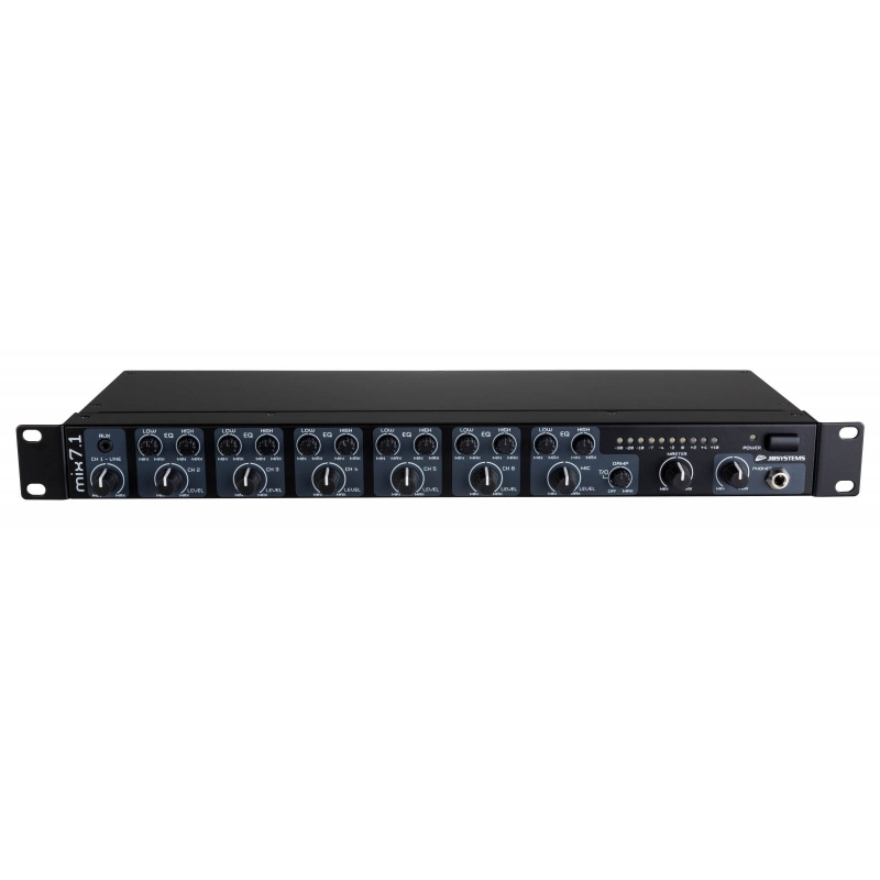 - 1 entrada de micrófono con EQ alto y bajo y Talkover (amortiguación/umbral ajustable)