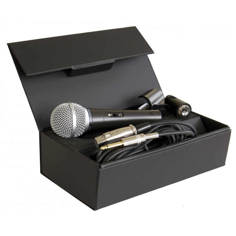 • Soporte, clip de micrófono y cable de 6 m con conexión XLR a un conector jack mono