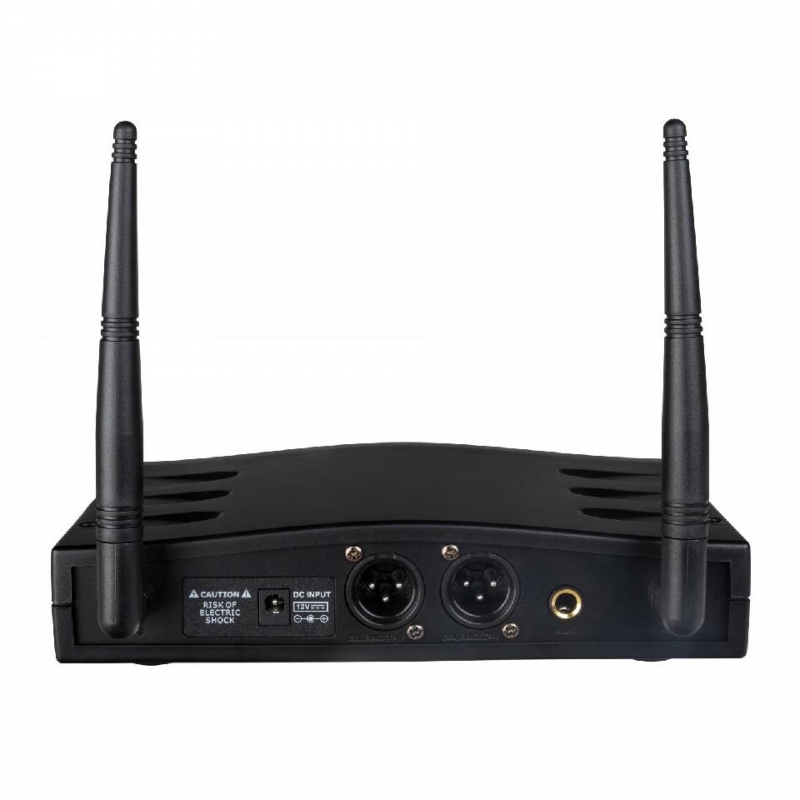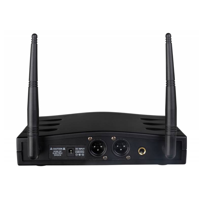 • Receptor de micrófono inalámbrico dual PLL/UHF usado en combinación con: