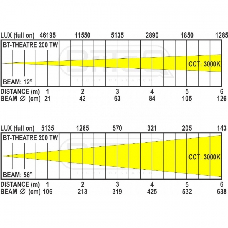 • Led doble (100W 2800K + 100W 6000K) para blanco sintonizable con CCT que va desde 2800K a 6000K