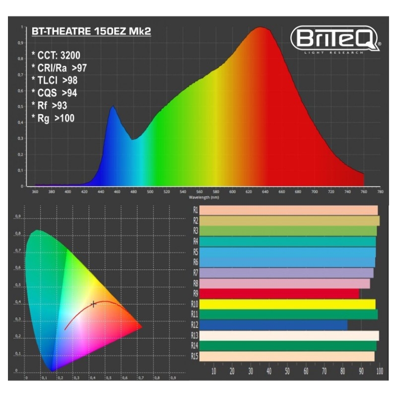• Excelentes características fotométricas: CRI / Ra> 97, TLCI> 98, CQS> 94, Rf> 93, Rg> 100