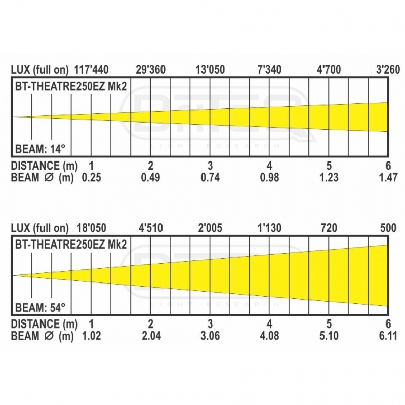 LED de 250 W blanco cálido 3200 K que ofrece una luminosidad excepcional, ¡muy superior a los proyectores halógenos de 2 kW! Nueva versión Mk3 que incorpora el efecto redshift / amber drift para una reproducción fiel a los Fresnels halógenos tradicionales.