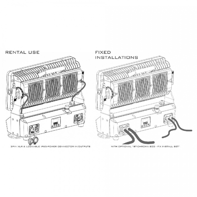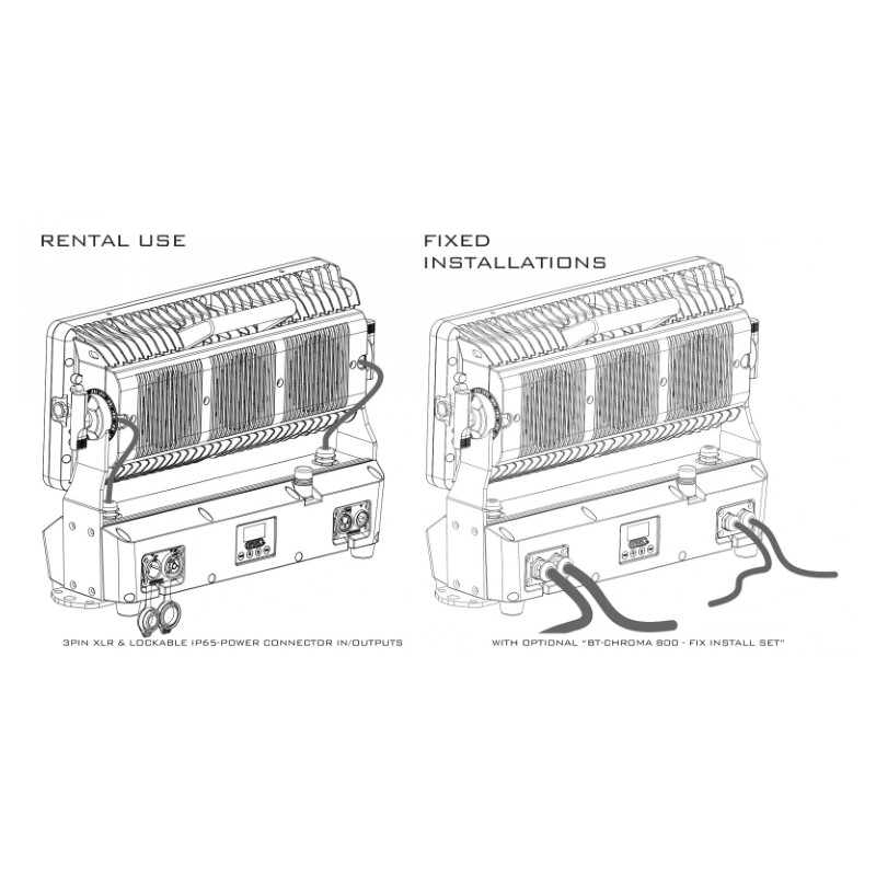 - Instalaciones FIJAS: Con un set opcional llamado “BT-CHROMA 800 - FIX install set” (módulos de E/S POWER & DMX