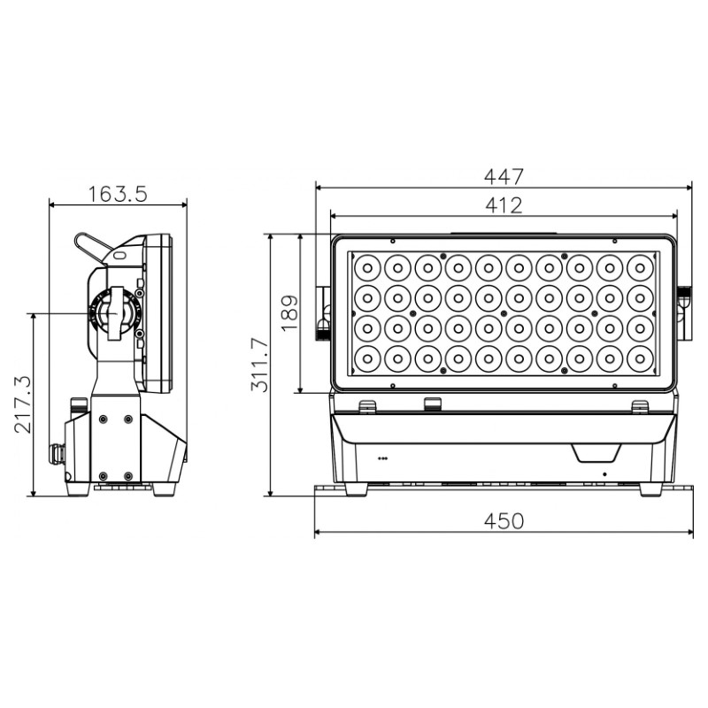 • Antena integrada y receptor Wireless Solution® G4 / G4S DMX (@ 2,4 GHz) para una fácil configuración y uso