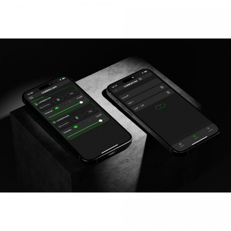 • Aplicación de control de 4 vías con configuración, ecualizador paramétrico, escena, posición y retardo