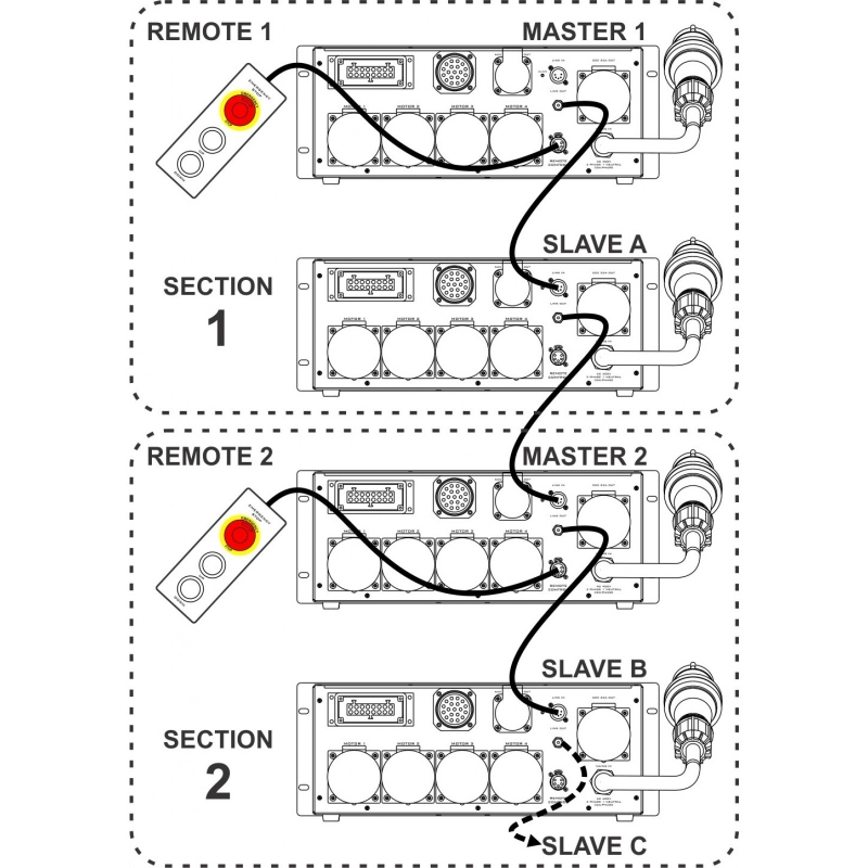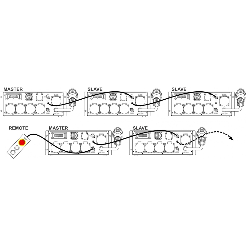 • Varias unidades se pueden vincular en maestro / esclavo usando el enlace de entrada / salida en el panel posterior:
